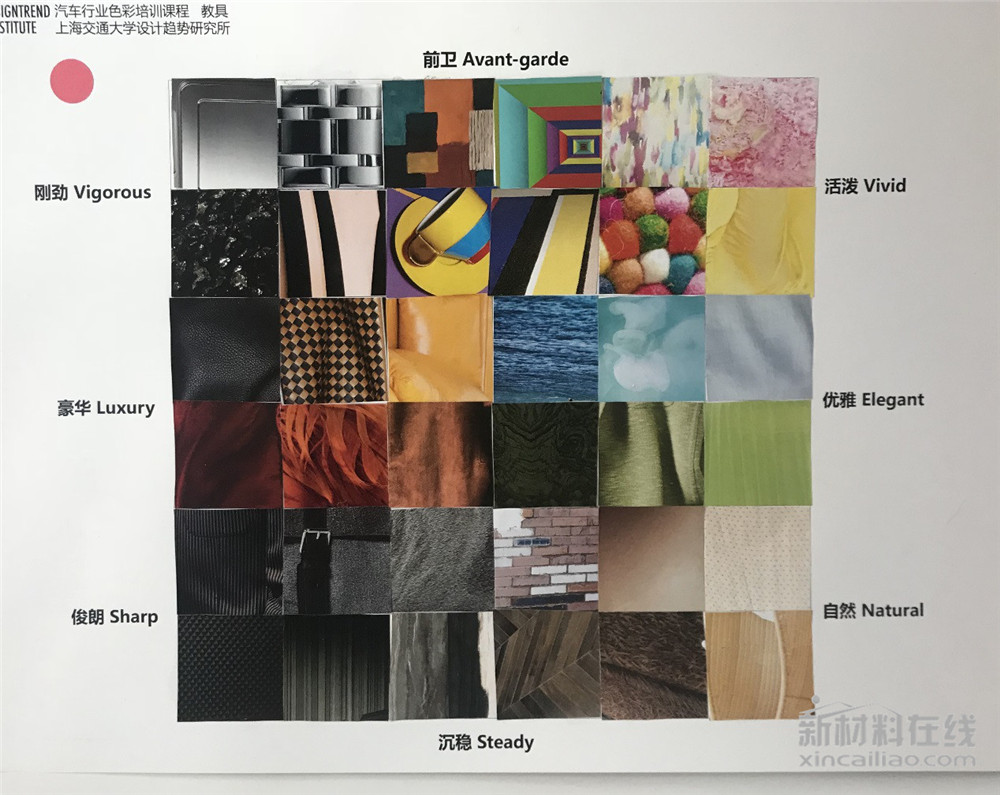 色彩、材质的整体搭配需要兼具九宫格中前卫、活泼、俊朗等颜色性格。