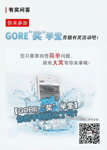 赶快扫描文章底部二维码参与【戈尔“奖”学堂】参与答题活动吧!你将有机会得到价值2000元的GORE-TEX的户外冲锋衣,更有星巴克优惠券等你来拿!