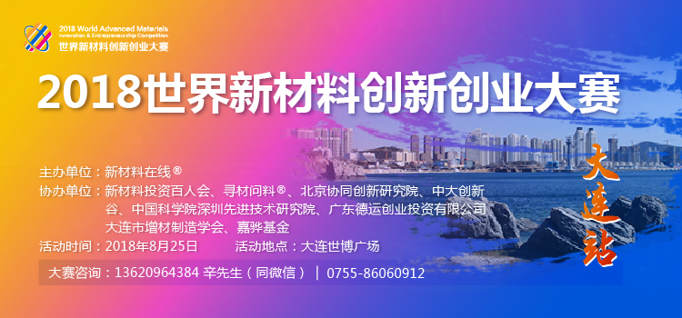 2018生物医用与3D打印材料高峰论坛兹定于2018年8月24-25日(星期五、六)在大连市盛大召开,其中8月25号会场将举行2018世界新材料创新创业大赛大连分赛,众多新材料行业项目将在此进行路演比赛。
