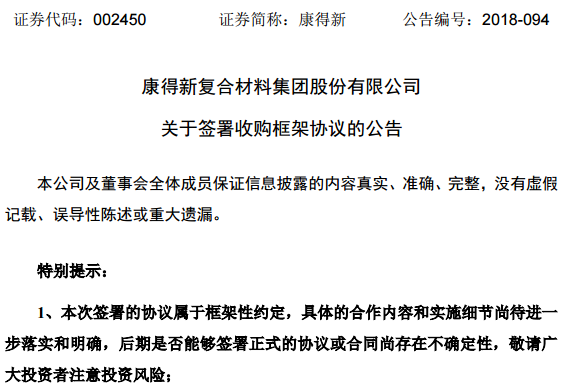 8月21日,康得新(002450.SZ)发布公告表示,公司已于近期和上海傲邦签署了《收购框架协议》。