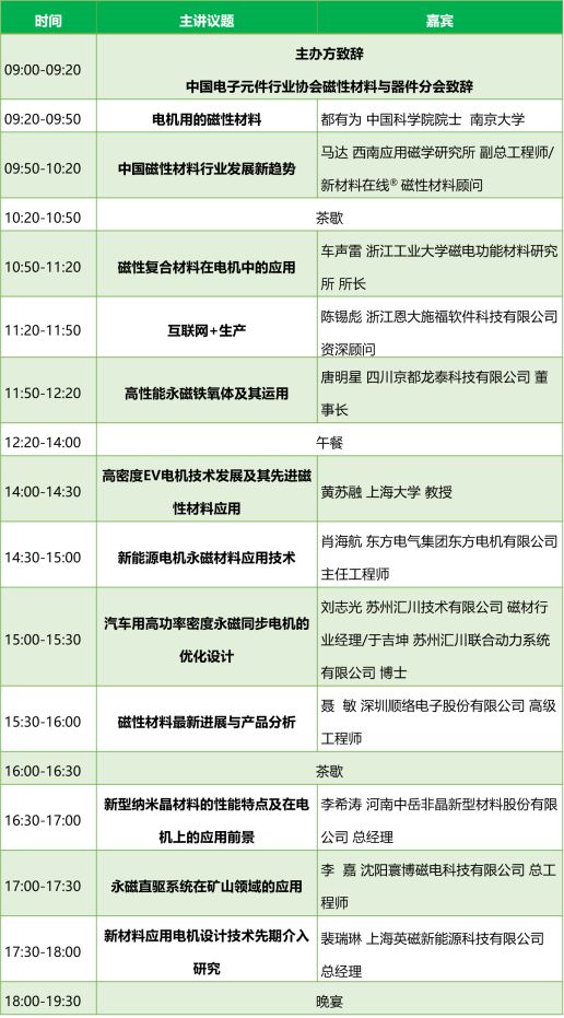 目前已有横店东磁、安泰科技、领益智造、天通股份、东方电机、卧龙电气、汇川技术、比亚迪、上汽集团、吉利、华为、格力电器200+知名企业确认参会。会议将围绕“磁性材料”和“新能源汽车电机”两大专题展开讨论。