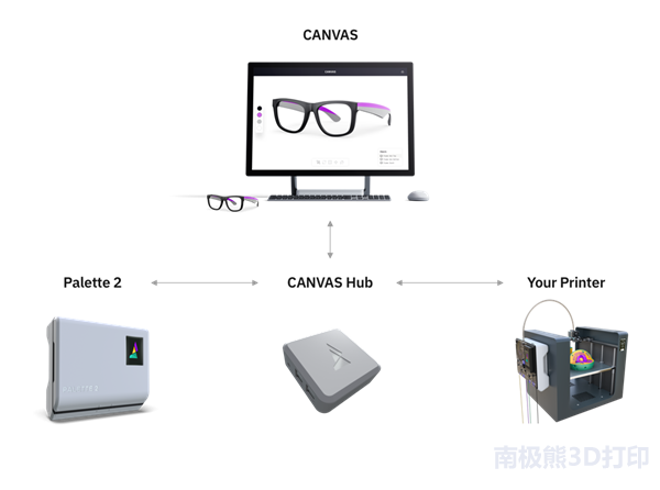除了Palette 2,Mosaic还开发了一个多材料云软件平台 - CANVAS。 CANVAS旨在简化多材料工作流程,自动化和简化流程,使任何使用3D打印机的人都能够访问多材料切片。
