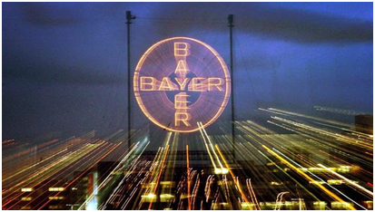 拜耳公司十字型商标夜晚在勒沃库森工厂内点亮,图片来源:dpa