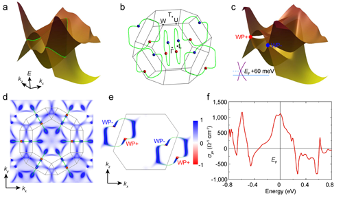 图二:Weyl节点、贝利曲率及反常霍尔电导的理论计算