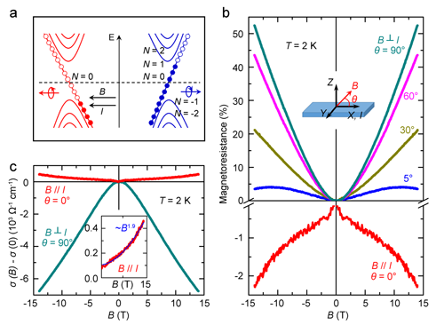 图三:Weyl费米子手性异常所产生的负磁电阻行为