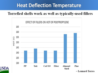 您能给我们介绍一下将烘焙过的杏仁壳与聚丙烯混合的研究吗?