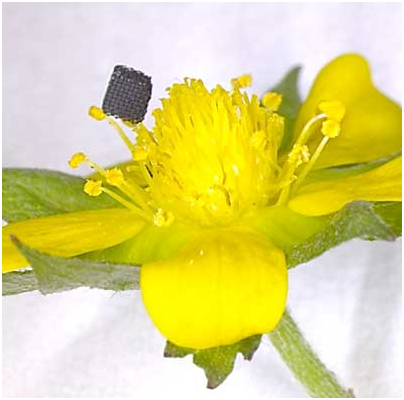 在草莓花上3D打印石墨烯八重桁架气凝胶(图片来源:弗吉尼亚理工大学)