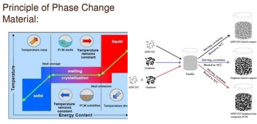相变材料(PCMs)已经有数十年的发展,经常用于建筑、电子和汽车等领域中。相变材料是在特定温度下熔化和固化的材料,在相变过程中具有存储或释放大量能量的能力。当前也会研究固体-气体和液体-气体类型的相变材料。相变材料可以是有机或无机化合物,但通常包括一些可以填充石墨导电填料的材料。其他相变材料一般使用碳纳米管(CNTs)作为填料。