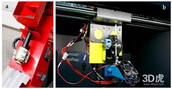 (a)长丝挤出机,(b)改进的熔丝制造(FFF)打印机头