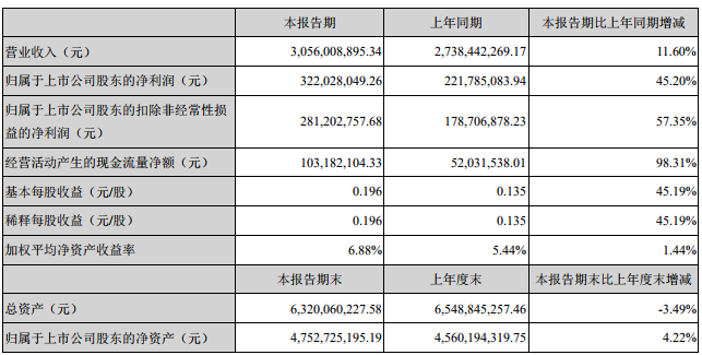8月28日晚间,横店东磁(002056.SZ)发布《2018年半年度报告》,显示公司上半年实现营业收入30.56亿元,同比增长11.60%;实现归属于上市公司股东净利润3.22亿元,同比增长45.20%。具体如下: