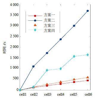 (1)四种方案对比表明,方案二阻热性能突出,可有效延缓热失控传播,但是散热性能较差,仅仅依赖隔热板和自然散热无法满足电池组热管理需求。方案三散热性能良好,但随着放电倍率增大最大温差骤升。同时,热失控触发后阻热性能远低于方案二和方案四。而方案四不仅大大增强了电池组的散热能力和电池组内各单体温度均匀性,其高隔热性能还可有效阻断热失控传播。