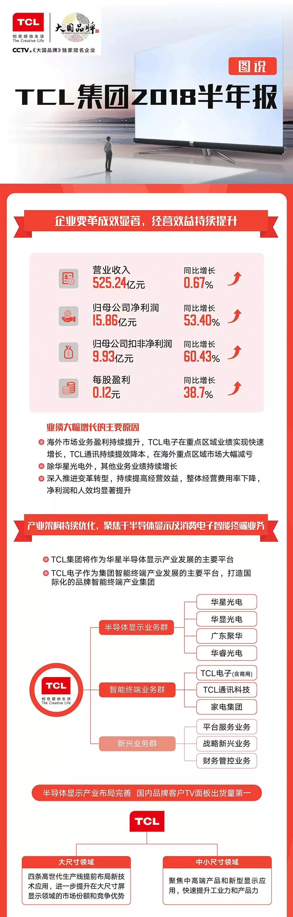 在刚刚发布的《TCL集团2018半年报》中,TCL集团用不断攀升的潜力、多项排名第一的实力,霸气展示了大国品牌的魅力。