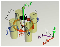 图1所示为超分子的可视化示意图。其中包括1个PEC圆筒和4个介电圆筒,P代表导体电偶极矩,T代表介电涂层的环形矩