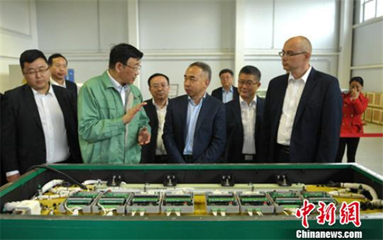 华黎向嘉宾们介绍超级电容生产情况。刘忠俊 摄