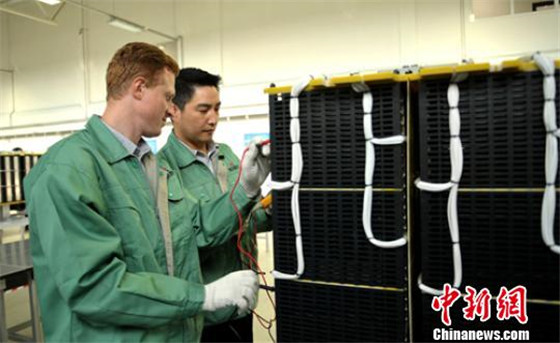 车间生产线上技术人员正在测试组装好的电容模块。刘忠俊 摄