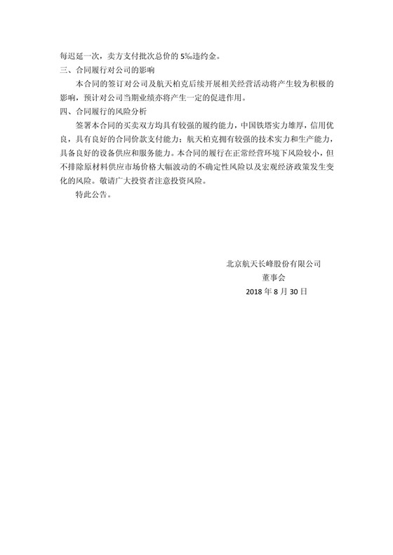 航天长峰表示,本合同的签订对公司及航天柏克后续开展相关经营活动将产生较为积极的影响,预计对公司当期业绩亦将产生一定的促进作用。