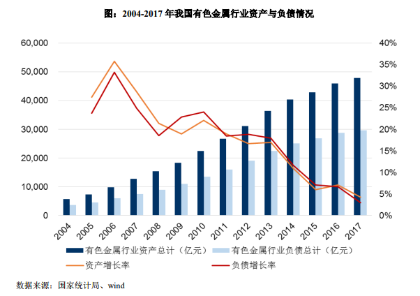 中铝国际招股说明书披露,按十种有色金属(包括铜、铝、铅、锌、镍、锡、锑、汞、镁及钛)产量及消耗量计,中国是全球第一大市场。我国有色金属行业发展迅速,行业整体规模迅速增加。资产方面,2005年起有色金属行业总资产增速均保持在10%以上,但整体呈现增速放缓的趋势。2014年,行业资产规模首次突破4万亿元。