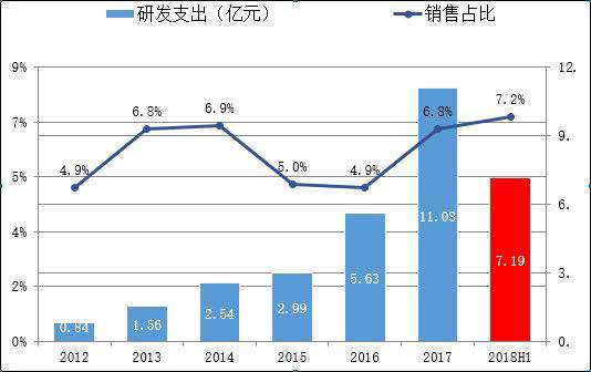 2018H1研发支出占营业收入比例7.18%,创历史新高
