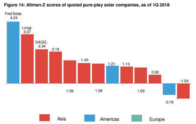 2018年彭博财经新能源组件制造商评级报告中,隆基股份Q1财务健康指数3.37,排名全球第二,中国第一,表现出隆基长远的战略发展水平和对市场风险的有效把控能力。
