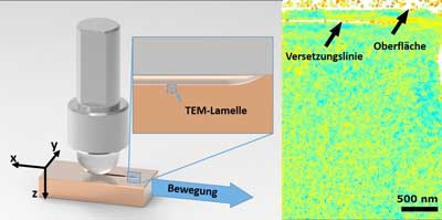 在他们的研究中,研究人员想在150到200纳米的深度探测出一条明确的分界线。在这条线上已经形成了第一次接触并且是不可逆转的。这是也就是材料之后会发生损害的根源。科学家们测试了各种各样的材料,如铜、黄铜合金、镍、铁或钨,并且总是得到了相同的结果。