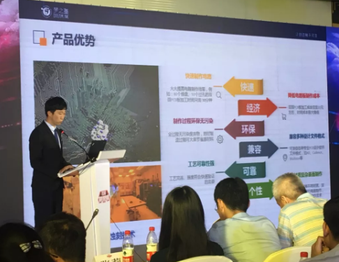 在大赛第一环节“黑科技”产品现场运行演示后,梦之墨联合创始人、副总经理于洋博士介绍了基于液态金属材料的前沿科技“液态金属电子增材制造技术”,在一次次的匠心之下,引领产业升级。