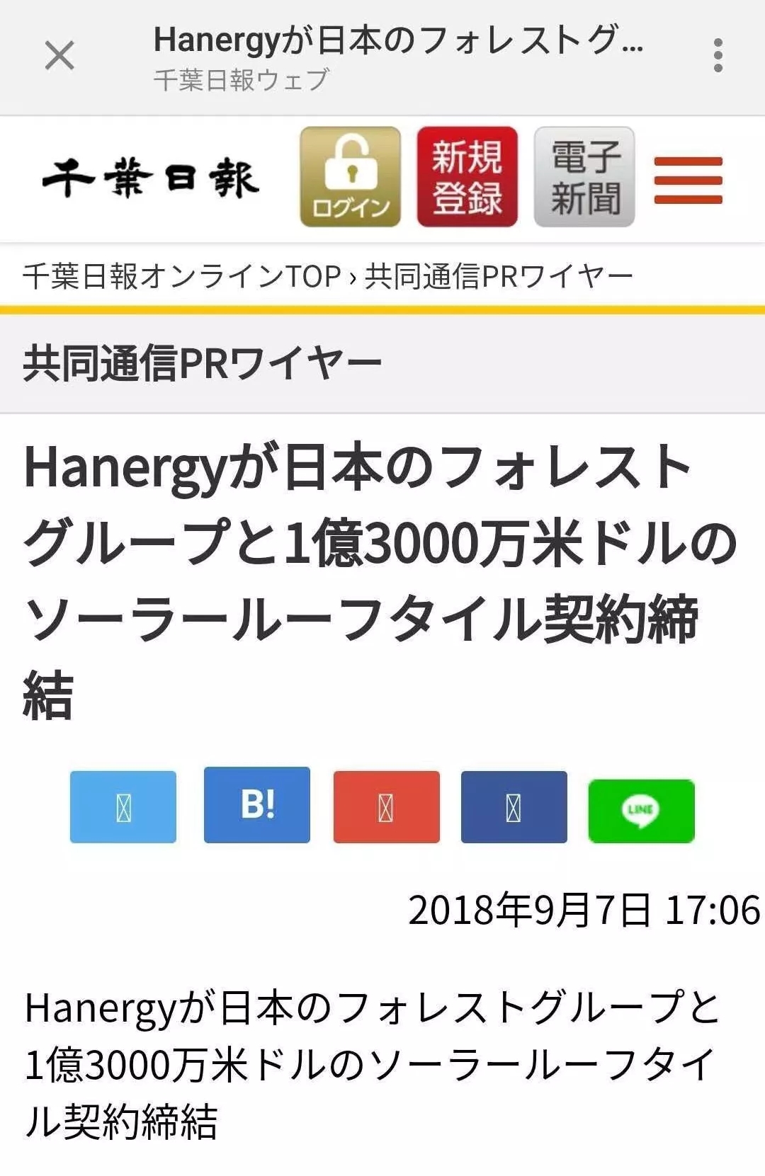 此次汉能产品被日本建筑综合集团Forest Group预购,说明汉能产品的品质和质量完全符合日本市场的要求。该合同也是日本薄膜发电市场迄今为止最大的合约。