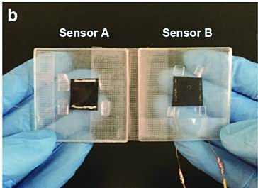 该团队以皱纹纸为原料,利用其有定向排列的纤维与皱纹结构,采用简单的高温碳化处理将其转变为导电网络,并保留了各向异性的微观结构,进而通过PDMS(设计管理系统软件)封装制备了电阻式柔性各向异性应变传感器。经检测,该传感器除了在平行和垂直方向上表现出应变传感差异显著的灵敏度以外,还兼具优良的柔性、快速响应性以及出色的可靠性和稳定性。该团队将柔性传感器用于运动检测及二自由度机械手的人机交互。发现两个各向异性应变传感器正交耦合后,在水平与垂直方向上的应变互不干扰,可实现多维应变传感及与二自由度设备的人机交互。