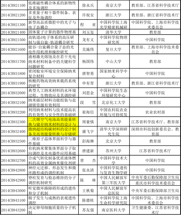 近日,国家科技部发布2018年973计划(含重大科学研究计划)项目结题验收工作安排的通知,其中基于超级电容器的大容量储能体系及其应用、可再生能源与天然气融合的分布式能源的网络系统基础研究、二次锂空气电池高效能量转换与储存纳米材料的设计与调控、微纳超结构碳材料的设计制备及高效能量转换与存储研究等项目列于清单。详细如下: