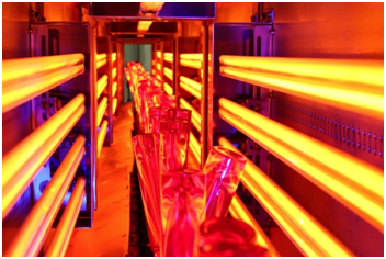 贺利氏特种光源公司的black.infrared红外加热器应用在玻璃制造领域。图片来源:贺利氏特种光源