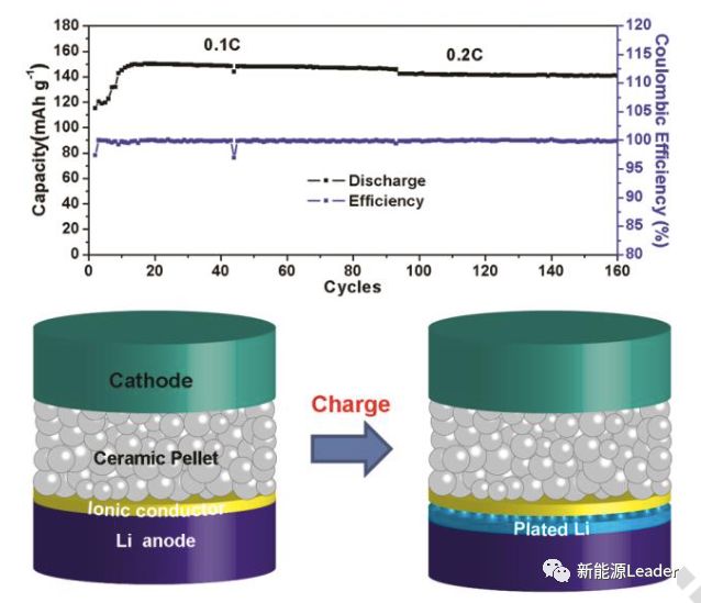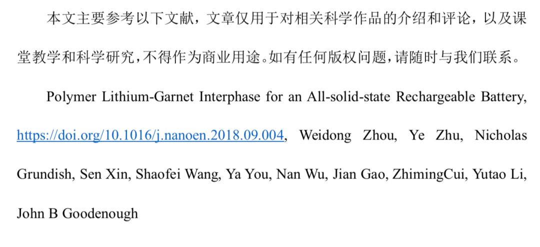 动力电池的比能量持续提高,现有的高镍材料硅碳体系比能量最高可以做到350Wh/kg左右,继续提高比能量就需要借助新的体系了,目前常见的高比能体系包括全固态金属Li电池,Li/硫电池和Li/空气电池,从目前的技术水平来看,全固态金属Li电池是最有可能的下一代高比能电池。对于全固态电池而言,固态电解质是关键技术,通常而言固态电解质在常温下的Li 电导率较低,影响电池的性能。为了提高全固态电解质的电导率,人们开发了多种类型的全固态电解质,其中石榴石型全固态电解质在常温下的电导率可达到10-4-10-3S/cm,与常见的碳酸酯类液态电解液的10-2S/cm非常接近,是一种理想的全固态电解质,但是石榴石电解质还面临着表面惰性层(LiOH、Li2CO3)与金属Li润湿性差,金属Li枝晶在晶界生长,界面阻抗大等问题。近日北京大学的Weidong Zhou(第一作者,通讯作者)、德州大学奥斯丁分校的Yutao Li(通讯作者)、John B Goodenough(通讯作者)通过在石榴石电解质表面涂布一层Li 迁移数达到0.9的聚合物电解质的方式抑制了金属Li枝晶的生长,并降低了界面阻抗,使得全固态金属电池的首次库伦效率提高到了97%,循环中库伦效率接近100%。