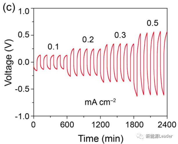 对于石榴石固态电解质而言面临的另一个问题是在循环过程中Li枝晶沿着晶界生长的问题,普通的石榴石固态电解质在Li/LLZTO/Li电池中循环紧紧5个小时后就出现了明显的短路现象,而经过聚合物电解质表面处理后的石榴石固态电解质则表现出了非常稳定的循环性能(如下图所示,分别在0.1、0.2、0.3和0.5mA/g的电流密度下循环10个小时(充电1h,然后放电1h)),该电解质能够稳定的循环超过500小时,而不发生短路现象。