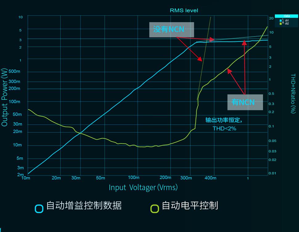 TMS8010/TMS8020均集成有DRC(防饱和)功能,可以控制音频信号的大小,降低由于供电电压不稳定等原因造成的信号失真,提高音质,同时限制最大输出功率。