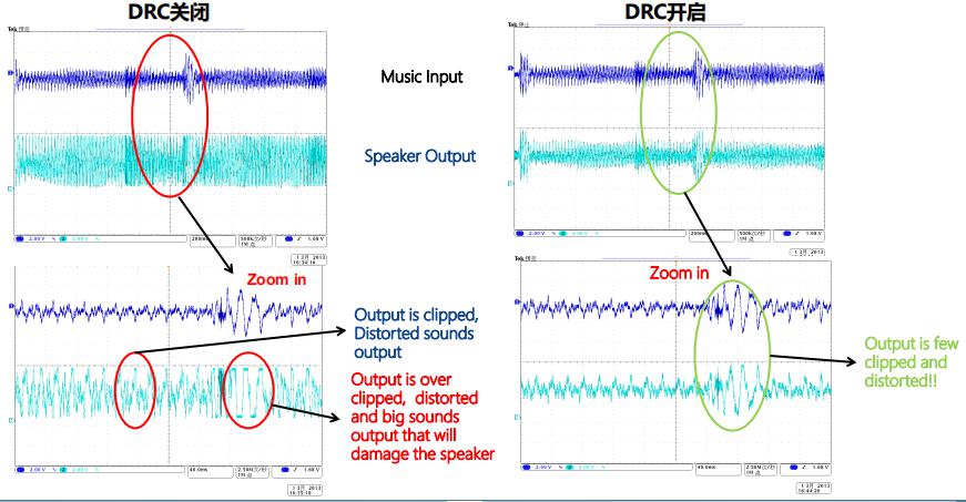 DRC功能关闭与开启状态下功放状态