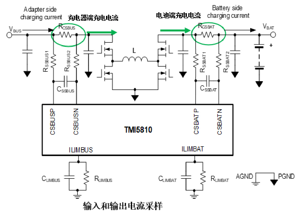 当 DIR 输入为低电平时,TMI5810工作于充电模式,由适配器接口(VBUS 端)向电池(VBAT 端)充电;
