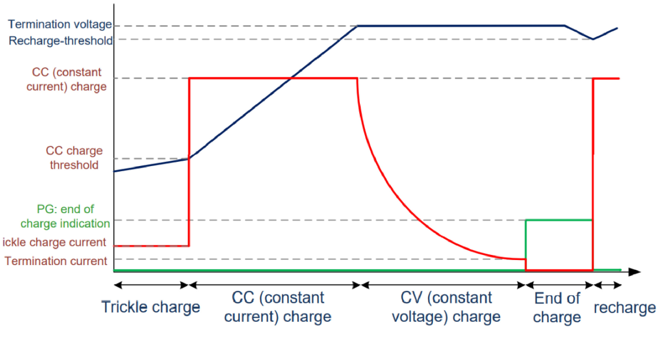 在充电模式下,具有充电管理功能,支持涓流,恒流,恒压和满充指示管理。
