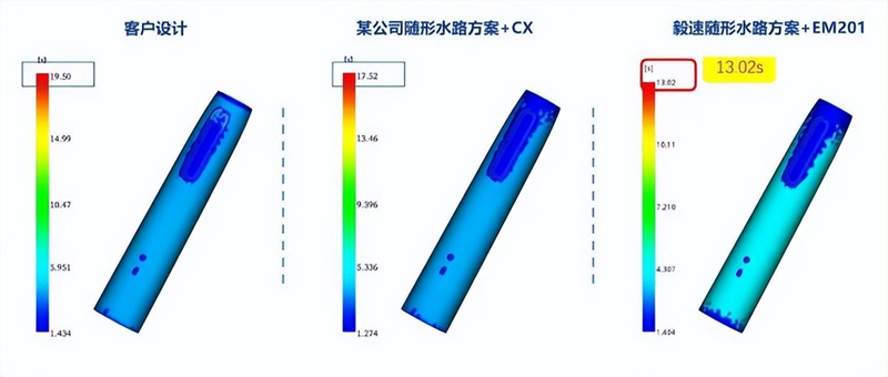 第三,3D打印随形冷却水路还可以提高模具生产效率。由于3D打印可以制造随形水路的特点,可以使水路更接近产品,进而缩短冷却时间,由于在生产中,冷却时间占整个生产流程比重最大,缩短冷却时间将使整个生产周期加快,有效提高生产效率。