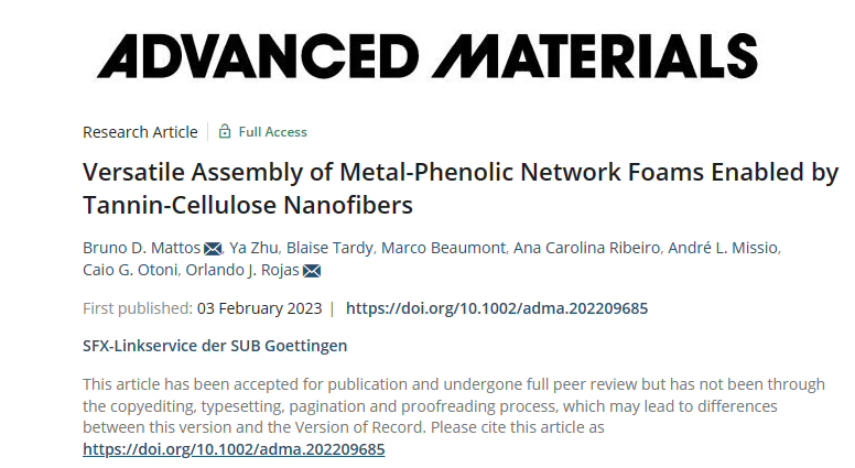 提出了一种制造MPN泡沫的通用方法,作为使用所有植物基材料作为构建来开发功能的工具箱。相关成果以“Versatile Assembly of Metal-Phenolic Network Foams Enabled by 单宁-Cellulose Nanofibers”为题发表在《